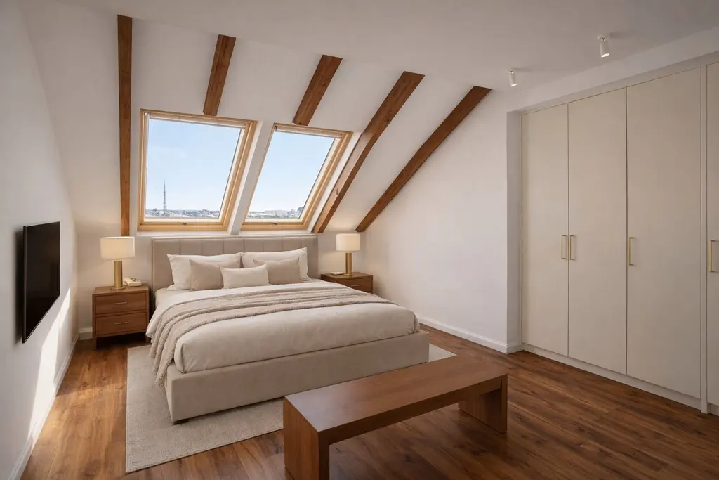 Предлагаме на Вашето внимание модерен, мансарден апартамент, с топло изложение запад, което през дългите студени приблизително 9 месеца, ще бъде и енергийно ефективен, но, ако се завърши с вкус и с новите технологии и материали, може да се превърне в разкошно жилище!!!