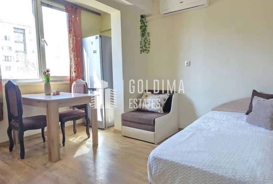 ГОЛДИМА Естейтс продава панелна гарсониера, преустроена в малък двустаен апартамент с обща площ от 40,77 кв.м. в ж.к. Изгрев, гр. Бургас.