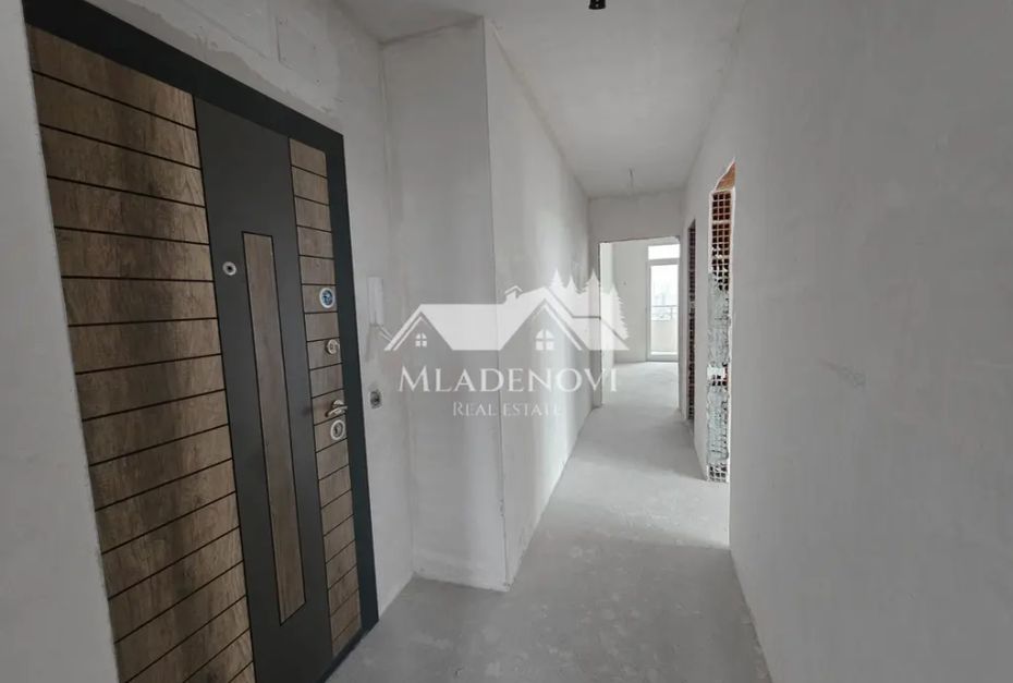 Сградата е ново строителство от 2025 г., с тухлено строителство и Акт 16. Жилището е в степен на завършеност