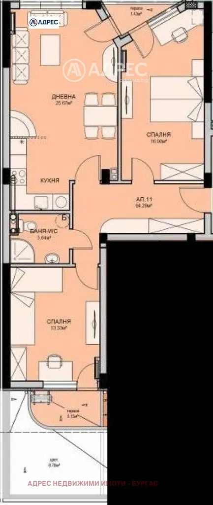 AI обобщениеАпартамент с площ 116 кв.м в град Бургас, Меден рудник - зона В. Разполага с 3 стаи и е на 1-ви висок етаж в сграда с 5 етажа.