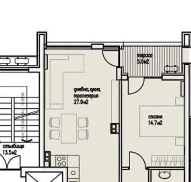 Всекидневна с кухненски кът