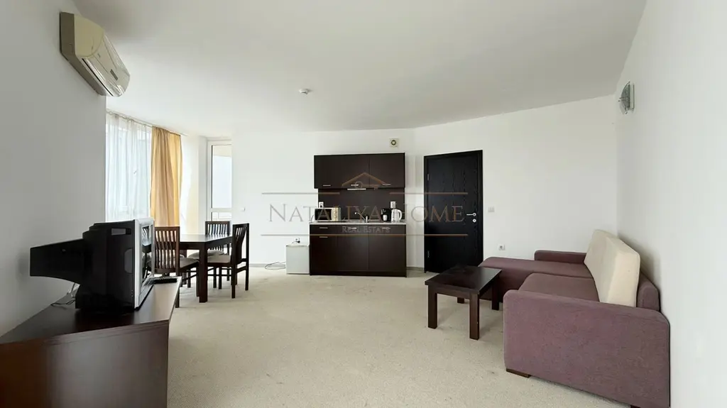 Жилището е с югозападно изложение, което гарантира много естествена светлина през целия ден и създава топла и приятна атмосфера. Просторната всекидневна и добре оформените използваеми тераси допринасят за комфорта и възможността за пълноценно ползване както за почивка, така и за ежедневие.