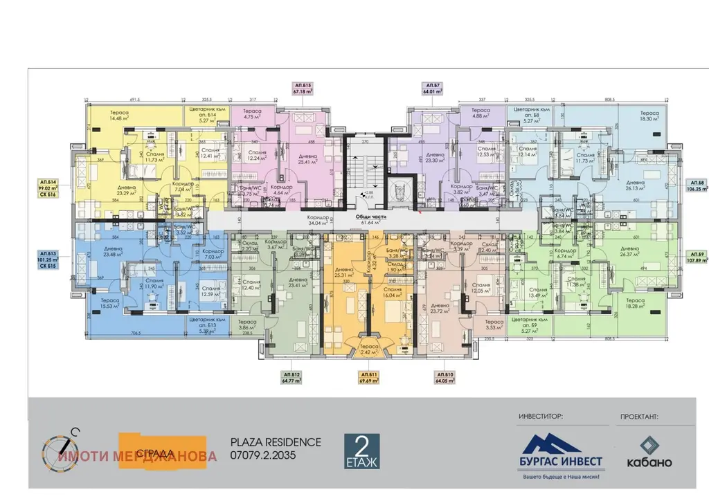 Plaza Rezidence се изпълняван от доказан строител, модерен архитектурен проект с луксозна визия, висока енергийна ефективност и стратегическа локация до болница 'Сърце и мозък' - в нова инфраструктура и бърз достъп до спирки на градски транспорт, в непосредствена близост с първия МОЛ в гр. Бургас.