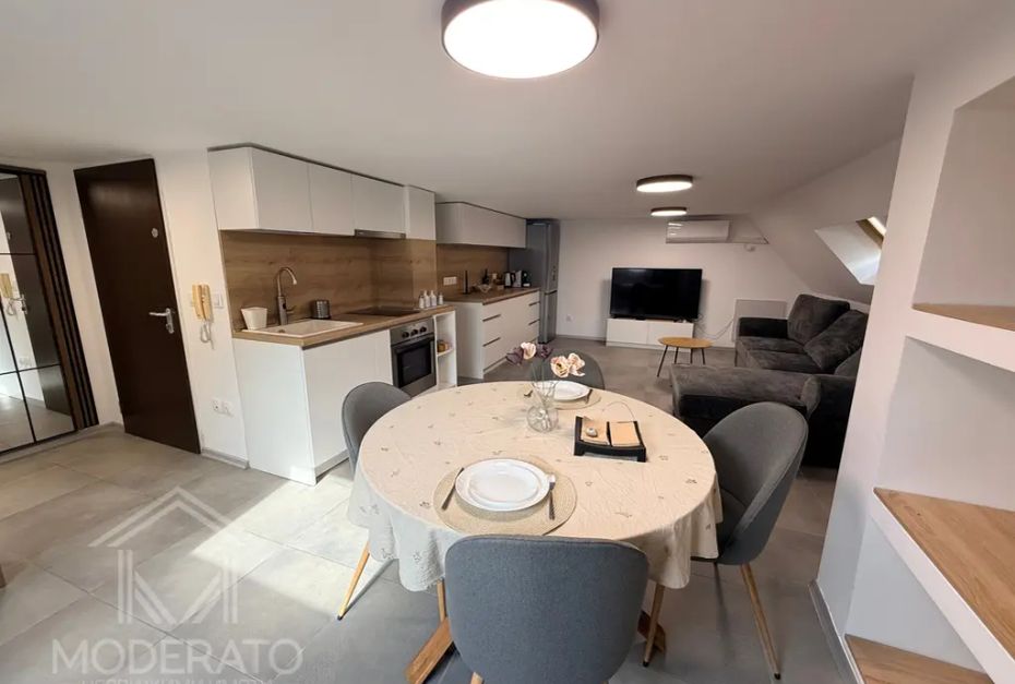 Предлаганият имот е двустаен апартамент с обща площ 92 кв.м., разположен в кв. Възраждане, град Бургас. Разпределението включва просторна дневна с отворен план кухня, спалня, мокро помещение, баня с тоалетна, две тераси и входно антре. Апартаментът е на последния 7-ми етаж в тухлена сграда от 2010 г. със асансьор и Акт 16. Изложението е северозапад/североизток, което осигурява умерена дневна светлина. Сградата е с качествено строителство и поддържани общи части. Локацията е близо до центъра на града, с удобен достъп до Борисовата градина, училища, детски градини и морска гара. Имотът е подходящ както за живеене, така и за инвестиция с възможност за отдаване под наем. Това е функционален имот с балансирано разпределение и добра локация за градски живот.