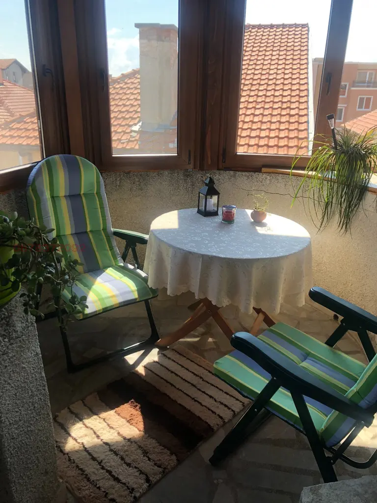 AI обобщениеАпартаментът се намира в квартал Сарафово, град Бургас, в сграда от 2005 г. с тухлено строителство. Разпределението включва хол с кухня, спалня и кабинет, който може да се използва като детска стая, както и баня с тоалетна. Жилището е на последен етаж (3/3) и разполага с голяма остъклена тераса, която обхваща целия апартамент. Сградата е с акт 16, а отоплението се осигурява чрез камина, радиатори и климатик. На покрива има система от соларни панели с бойлер за топла вода. Кварталът е старата част на Сарафово, близо до морето, автобусни спирки и магазини. Имотът е подходящ както за постоянно живеене, така и за инвестиция, като предлага удобства и функционално разпределение в близост до морския бряг.
