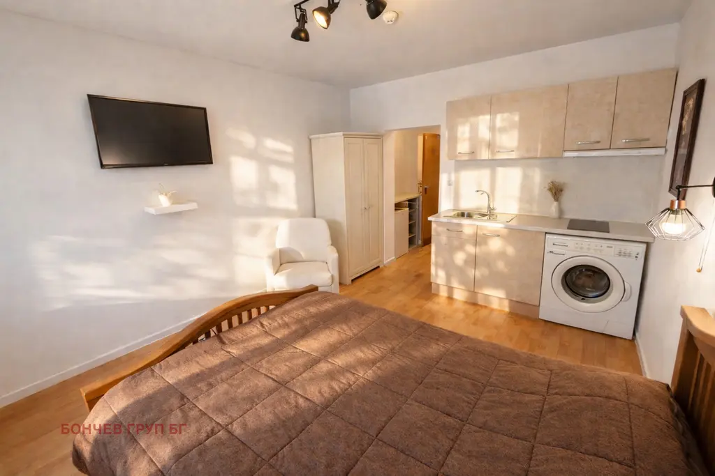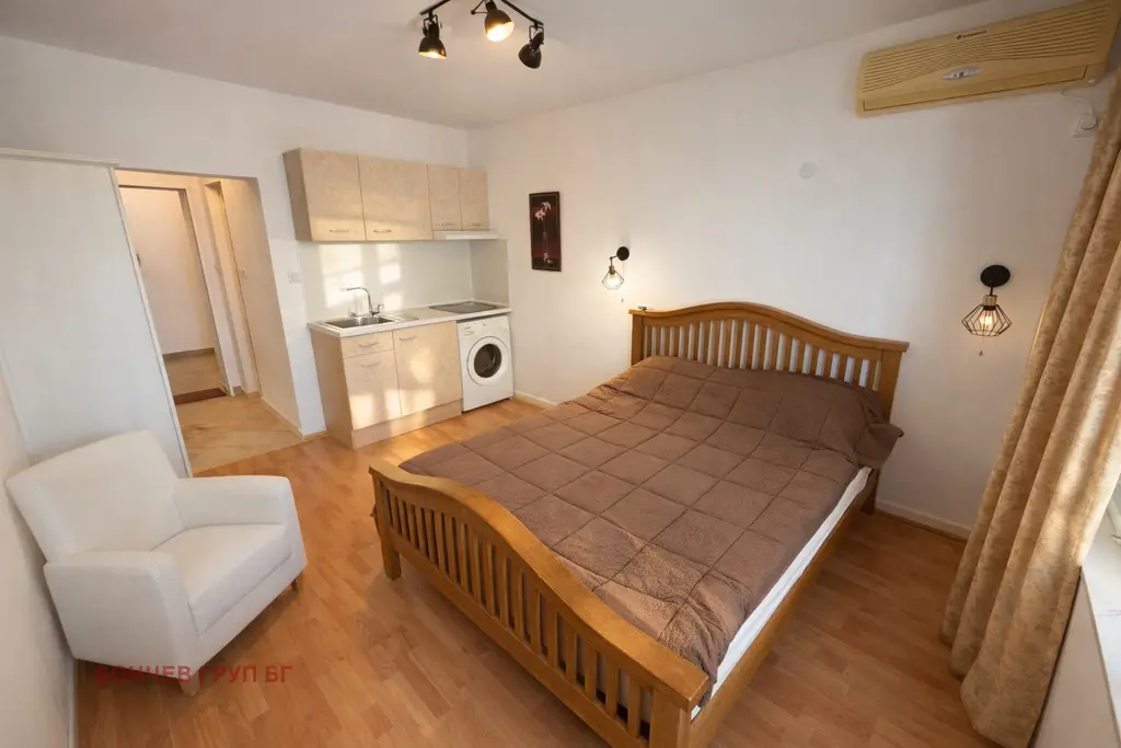 Предлага се студио апартамент в град Бургас, квартал Сарафово, разположен на първи етаж в жилищна сграда. Разпределението е компактно с една основна стая, подходяща за едно лице или двойка. Сградата е с бетонна конструкция и разполага с асансьор, паркинг и видеонаблюдение. Имотът е в добро състояние, с обновени части и налични битови услуги като вода и електричество. Локацията е близо до плажа и основна инфраструктура, в затворена територия с контрол на достъпа и зелени площи. Това прави имота подходящ за постоянно живеене или инвестиция под наем с удобства и близост до природата.