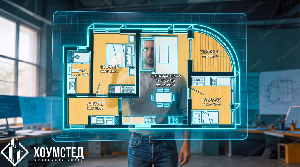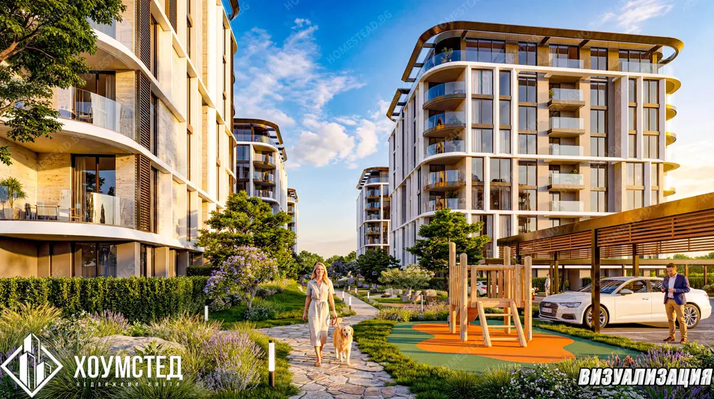 Към имота е изготвен цялостен интериорен дизайн от Хоумстед , представен чрез визуализации към обявата.