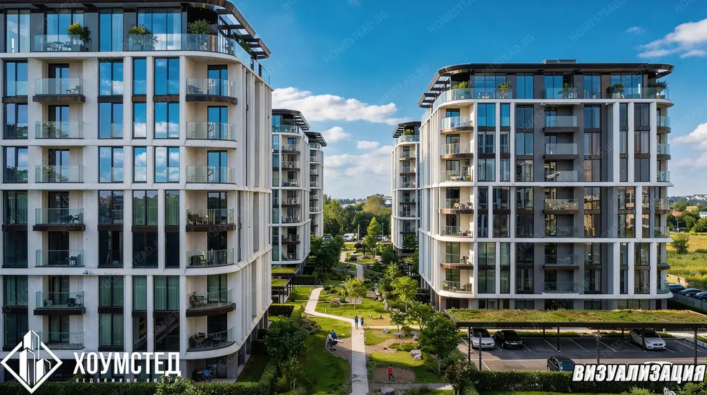 Гледките са ориентировъчни (дрон кадри от района) - реалната перспектива от среден етаж ще се различава