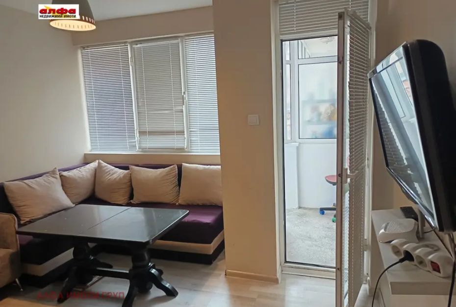 'Алфа Имоти Груп' дава под наем разширена гарсониера гр. Добрич, район бившето кино Добрич , 1-ви жилищен етаж над магазини. Разпределение: просторна спалня, дневна с кухненски кът, остъклена тераса, баня с тоалетна. Апартаментът е полу-обзаведен, без бяла техника.