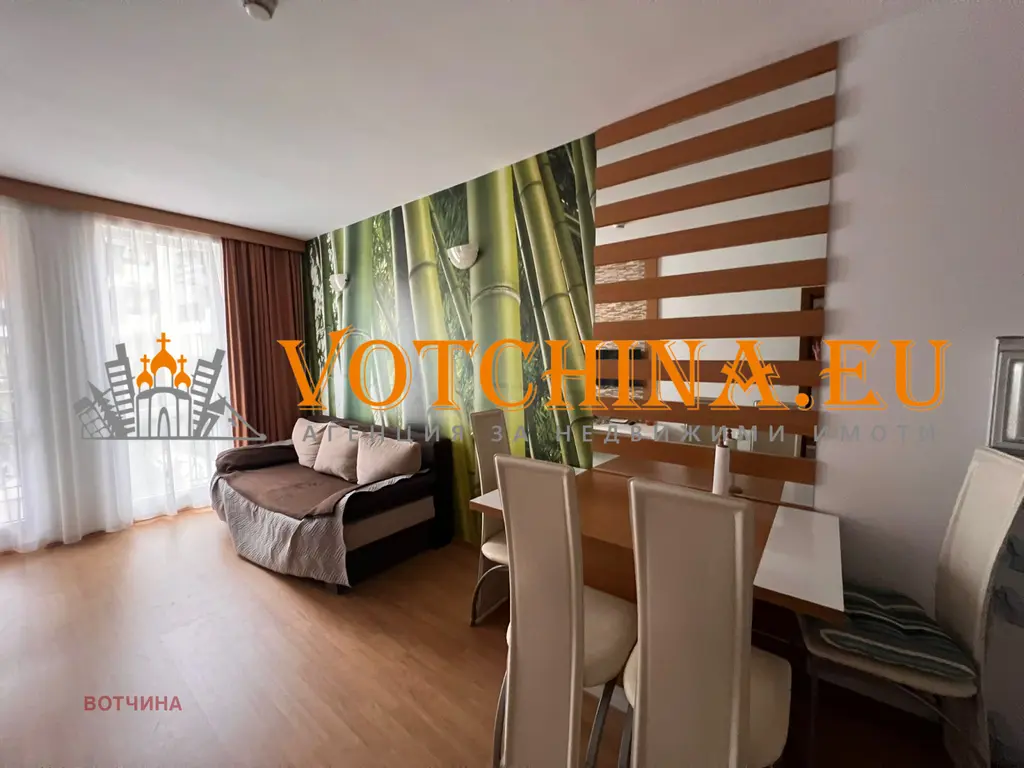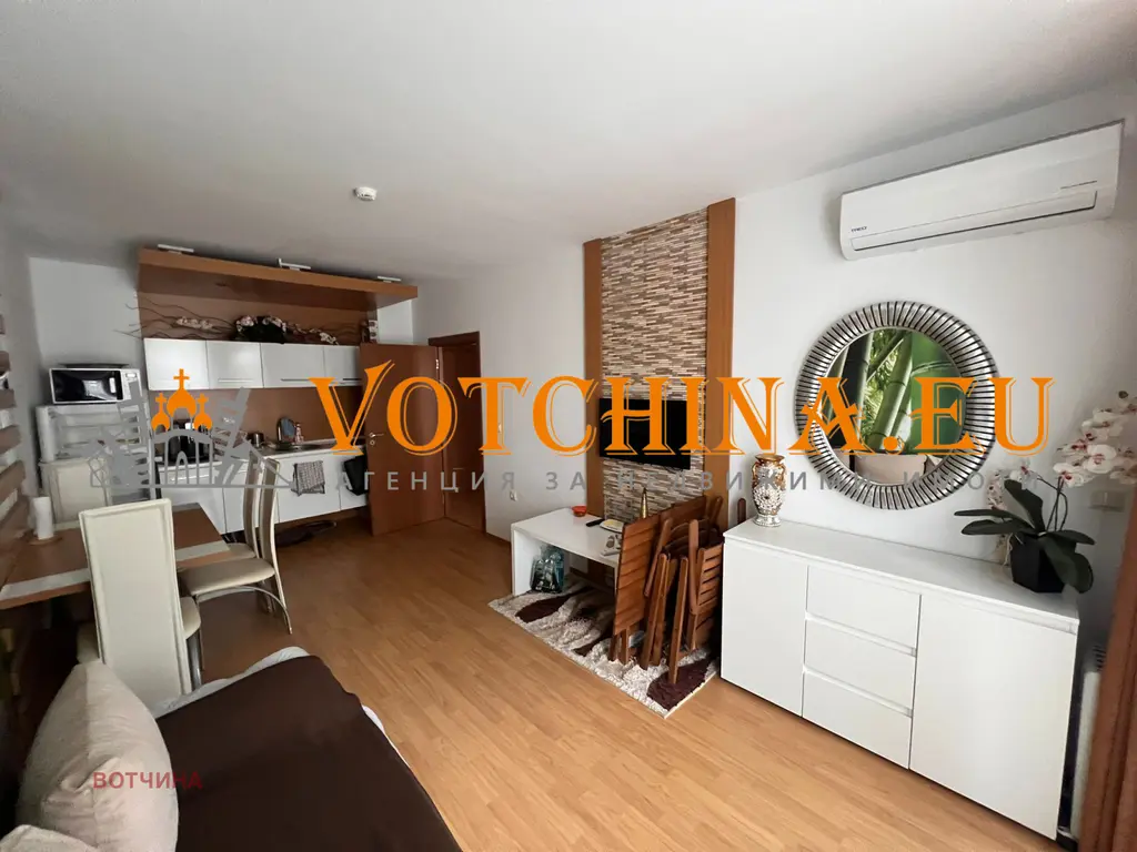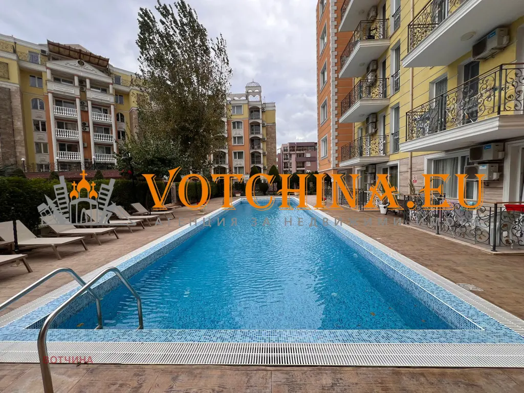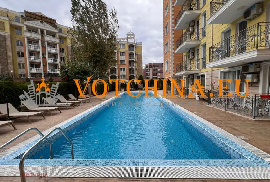 Агенция за недвижими имоти 'Votchina' предлага на вашето внимание двустаен апартамент в затворен комплекс в к.к. Слънчев бряг.