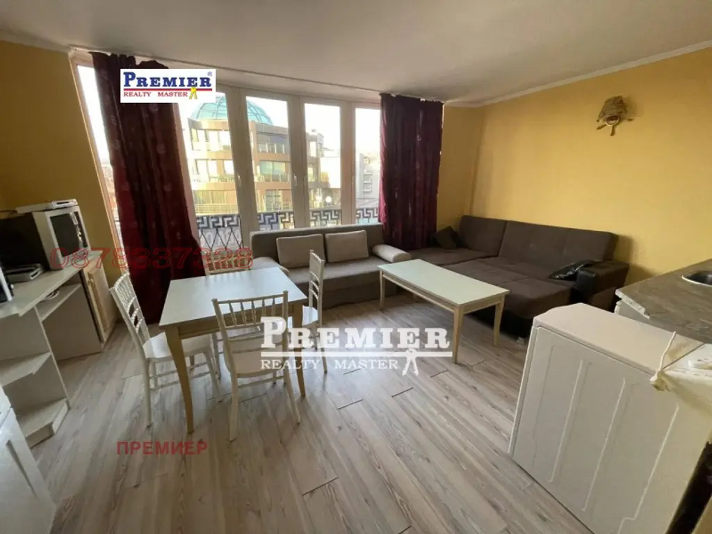 Давам под наем на първа линия напълно обзаведен, двустаен апартамент във Виктория Резиденс, в тихата част на Слънчев Бряг, етаж 4 от 5 / непоследен/ асансьор,на 70 метра от плажа, разстояние до Кубан 1, 5 км, разстояние до летището в Бургас 29 км.В непосредствена близост до апартамента има Мол, денонощен супермаркет, спирка на градския транспорт, и възможност за безплатно паркиране, а така също и множество заведения.Апартаментът разполага с кухня и всичко необходимо за обитаване.Може да спят в него 5 човека , тъй като двата дивана стават на легло , лежанката също и има бонус едно туристическо легло с матрак 10 см.Банята е с вана.В апартамента има и фитнес уред Гладиатор, климатик, плътни завеси, всички необходими мебели и електроуреди, като освен голяма , отделна спалня, във всекидневната има и два дивана , от които единия разтегателен/ става на спалня/ и това дава възможност апартамента да бъде за 5 човека.Терасата е с отличен изглед и е на отстояние от главната улица, което прави апартамента изключително тих.Цената за сезона от 10 юни до 10 октомври за целия сезон 10 000 лева