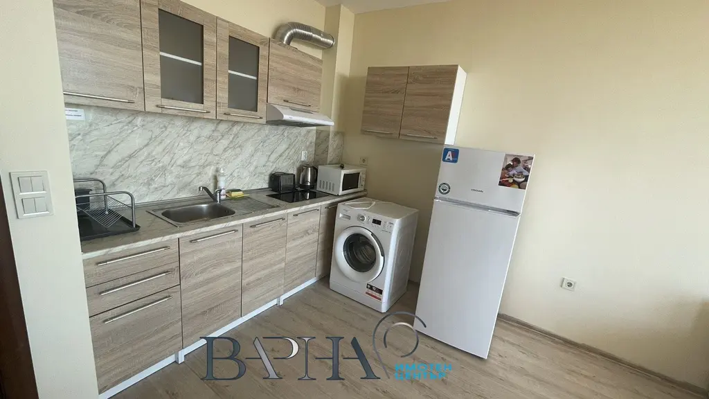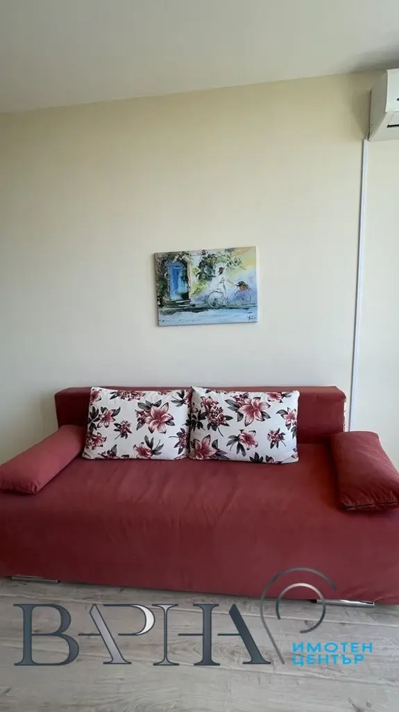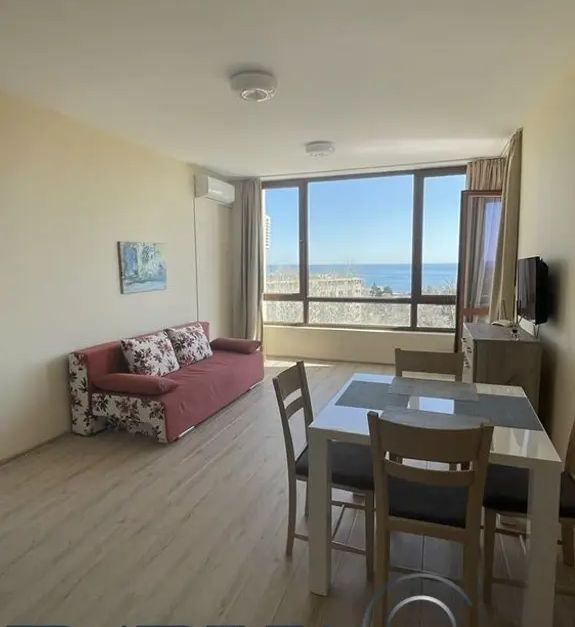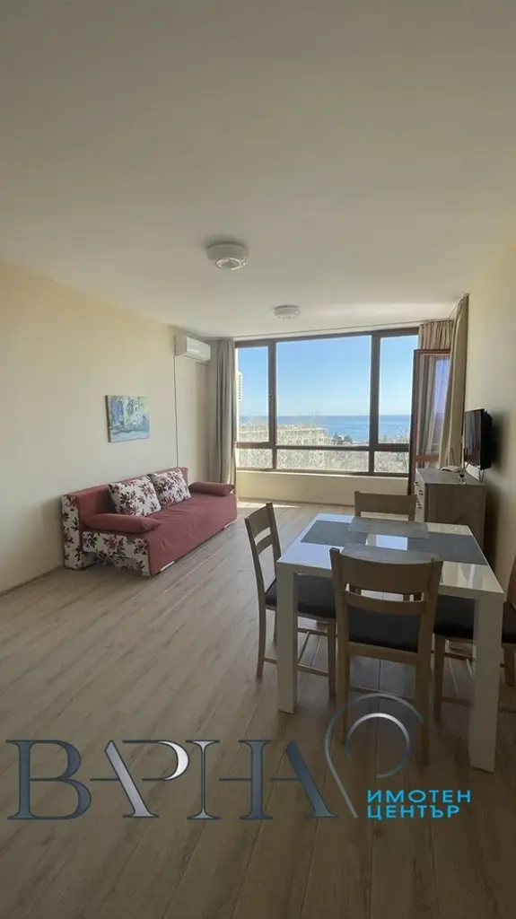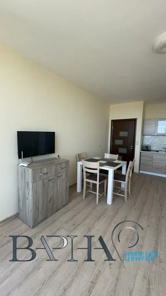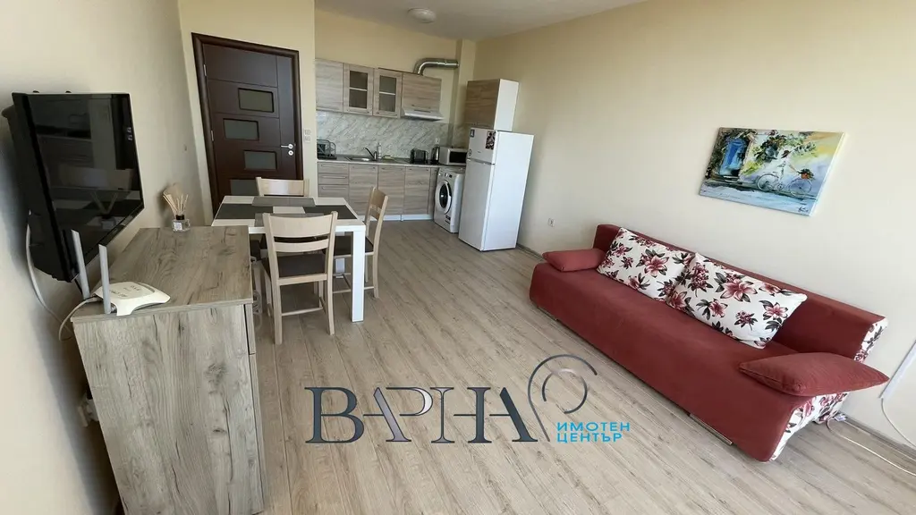 'Имотен център Варна' предлага двустаен апартамент в затворен комплекс в к.к. Златни пясъщи. Коплекса е разположен в тих и спокоен район в курорта. Имота е с разпределение: голям коридор, слънчева и просторна дневна, от която се разкрива прекрасна панорама към морето, спалня и баня с тоалет. Обзаведен с всичко необходимо. Охлаждане и отопление с климатици във всяка стая. На разположение на бъдещите наематели е ползването на басейн и паркинг. В наемната цена са включени такси за поддръжка на коплекса, интернет и телевизия. При нужда могат да се наемат още апартаменти в същата сграда. За повече информция, оглед и още предложения, моля обадете се на посочения телефонен номер!