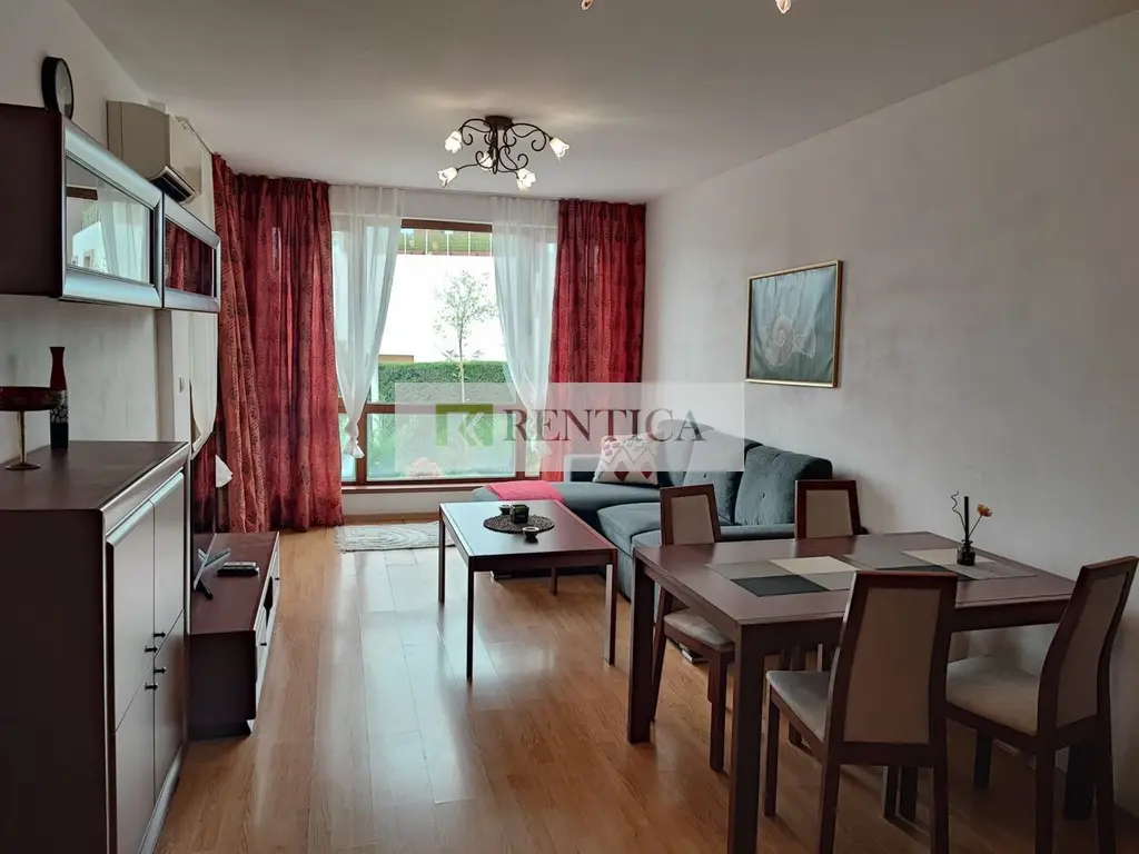 ОФЕРТА 8344 ✅Rentica.bg предлага под наем обзаведен двустаен апартамент, в местност Евксиноград. Имота се намира в сграда тип затворен комплекс с отлично поддържани общи части и контрол на достъпа. Апартаментът се състои от: дневна с кухненска част с вградени всички необходими ел. уреди, една спалня, баня с вана, коридор и тераса. Отоплението е с климатици. Възможно наемане на паркомясто - 100 евро на месец.