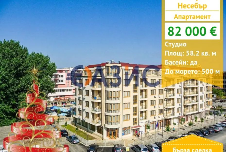 'Несебър Форт Резиденс' е вашият личен оазис между Слънчев бряг и Несебър. Между шумния ритъм на курорта и очарователния град Несебър е разположен жилищен комплекс 'Несебър Форт Резиденс' място, където хармонично се съчетават комфорт, природа и почивка. 'Несебър Форт Резиденс' не е просто жилище край морето, това е територия за живот, вдъхновение и умиротворение. Комплексът се намира в зелена и спокойна зона, между оживения Слънчев бряг и културната перла на Несебър. Само на няколко минути плажове, магазини, воден парк, автобусни спирки и цялата инфраструктура на курортния живот. Това е удобно място както за лятна почивка, така и за постоянно пребиваване. 'Несебър Форт Резиденс' е закрита защитена територия с добре поддържани алеи, цветни лехи, зони за отдих и просторен двор. Сградата е изпълнена в приятна светла гама, в центъра е разположен басейн, има също детска площадка, тенис на маса, ресторант с лятно кафене, паркоместа. Целият комплекс изглежда е създаден за спокойна, семейна атмосфера. Управляващото дружество на място поддържа ред и чистота през цялата година. Апартаментите в' Несебър Форт Резиденс ' се отличават с добре обмислени оформления, големи прозорци, балкони и възможност за обзавеждане според вкуса на собственика. Това е идеалното решение както за отдаване под наем, така и за лична почивка.