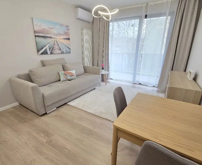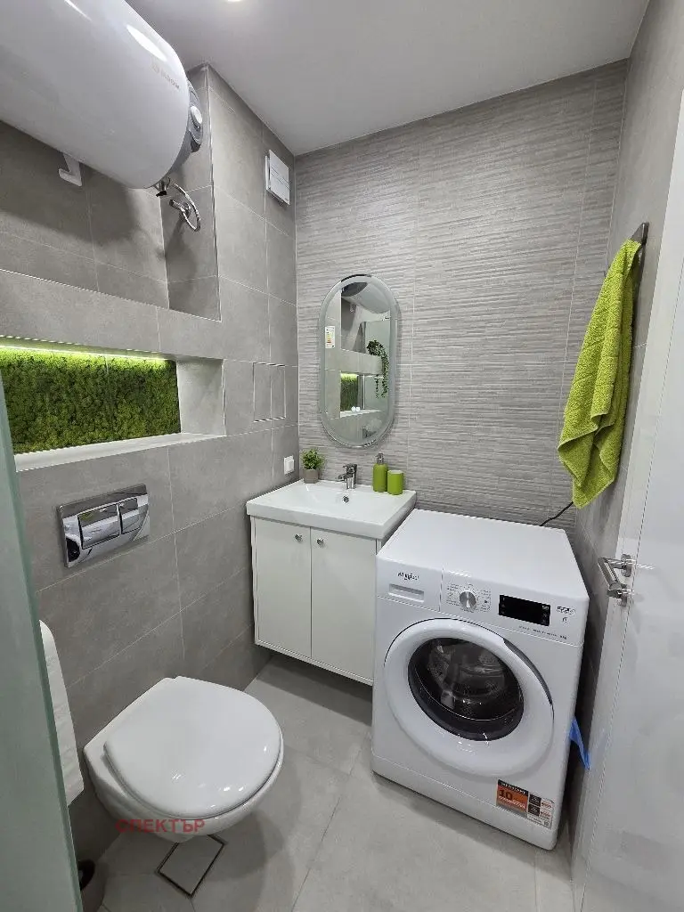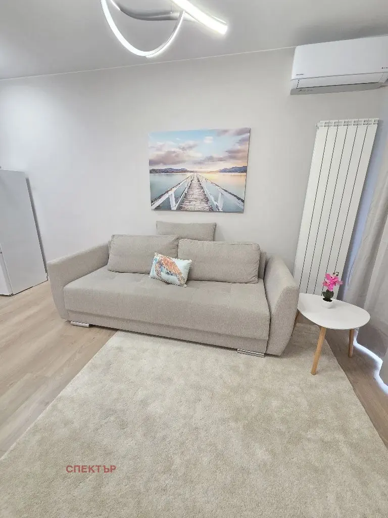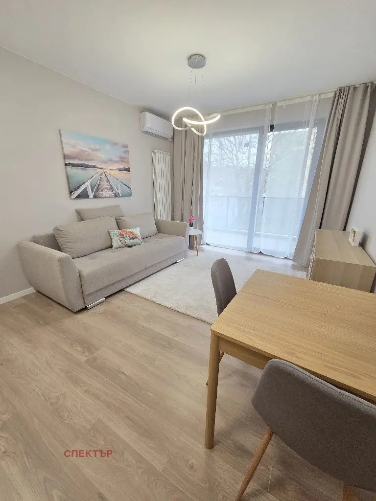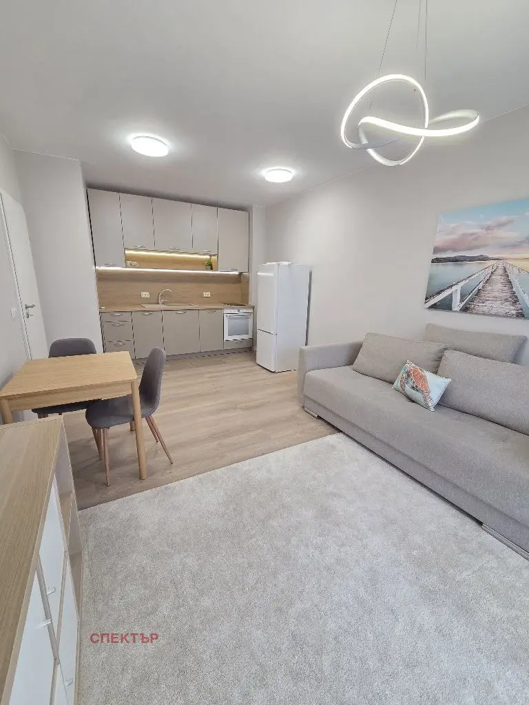 Отдава се под наем двустаен апартамент ново строителство с площ 62 кв.м, разположен в нова сграда с Акт 16 от 2025 г. Апартаментът е изцяло нов, напълно обзаведен и оборудван.
