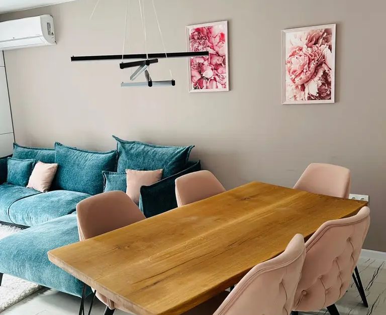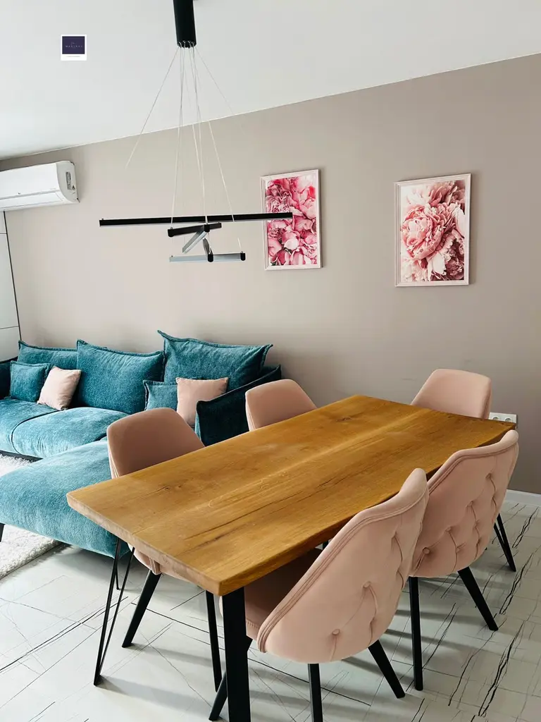 'Маринас Естейтс' отдава под наем прекрасен, чисто нов луксозно обзаведен тристаен апартамент, намиращ се в затворен комплекс в квартал Ладовица, най-близкият за излаз към град София. Апартамента е изключително топъл и светъл с изложение изток/югозапад. Обзавеждането е с италиански мебели, пода е с висококачествен гранитогрес, като във всички стаи има подово отопление. Отопление и вода на газ, като има иклиматик и бойлер при нужда.
