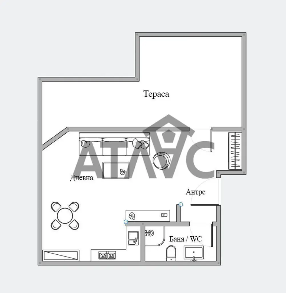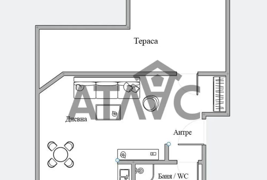 Представяме Ви БУТИКОВА СГРАДА от доказан инвеститор с множество красиви архитектурни сгради, отговарящи на високите изисквания на своите клиенти! Апартамента, който предлагаме се състои от дневна с кухненски бокс, баня с тоалетна, входно антре и ПРОСТОРНА ТЕРАСА! Имотът се издава на шпакловка и замазка по БДС с ВИК на тапа, ЕЛ.инсталация до ключ! Възможност за закупуване на ГАРАЖ! Оказваме пълно съдействие за банково финансиране от ВСИЧКИ ВОДЕЩИ БАНКИ в страната при най-добри условия и цялостна юридическа проверка на имотите, които предлагаме! БЪДЕТЕ ПРОФЕСИОНАЛИСТИ в избора на жилище с АТЛАС НЕДВИЖИМИ ИМОТИ .