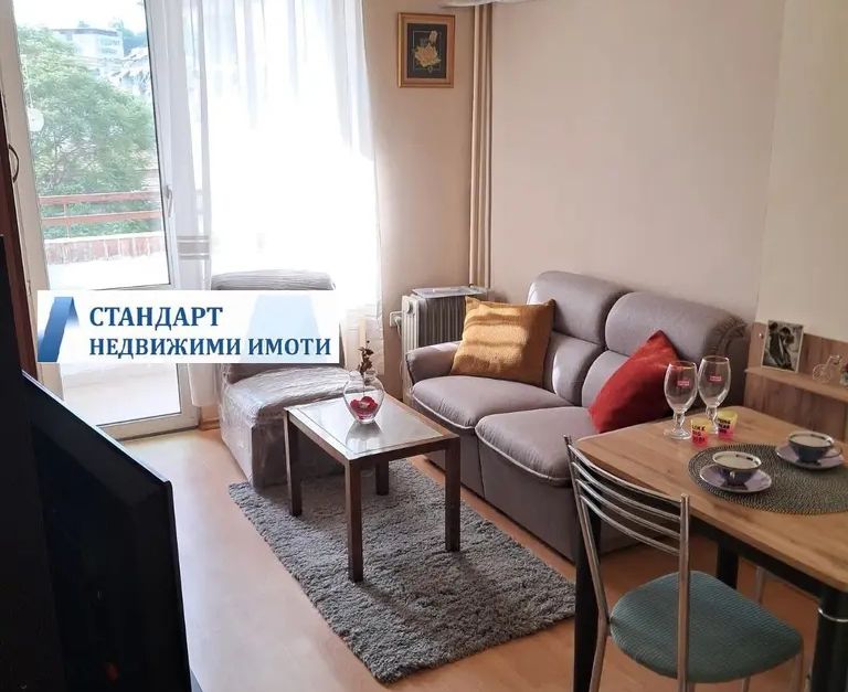 Двустаен мололитен апартамент без преходни помещения. Разпределение: антре, кухня, спалня, хол с тераса и баня с тоалетна. Ремонтиран и напълно обзаведен в кооперация. Намира се в района на р-нт Стадиона, Втора градска поликлиника, близо до спирки и магазини.