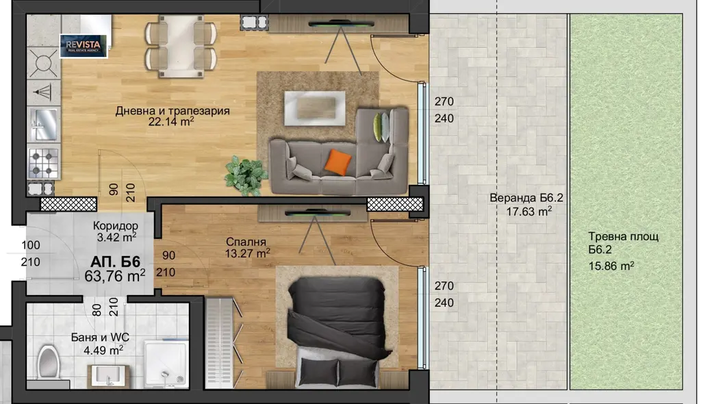 Веранда с прилежаща тревна площ - 34 кв.м.