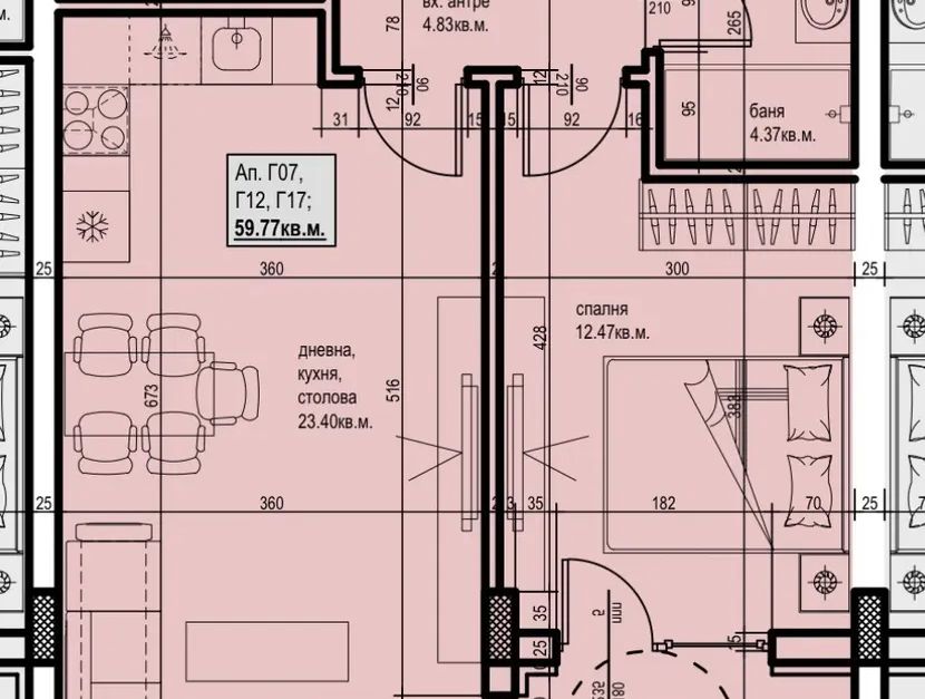 Предлагаме Ви за продажба двустаен слънчев апартамент в ново изграждащ се жилищен комплекс, отличаващ се с модерна визия,състоящ се от четири тела.Комплексът няма да бъде от затворен тип ,но ще разполага с всички удобства на такъв.Представлява хол с кухня-около 24кв.,спалня 13кв.м.,баня 4кв.м.,склад-3кв.м.,тераса лоджия-5кв.м.Чистата жилищна площ е 60кв.м.За повече информация и огледи 0897913101.