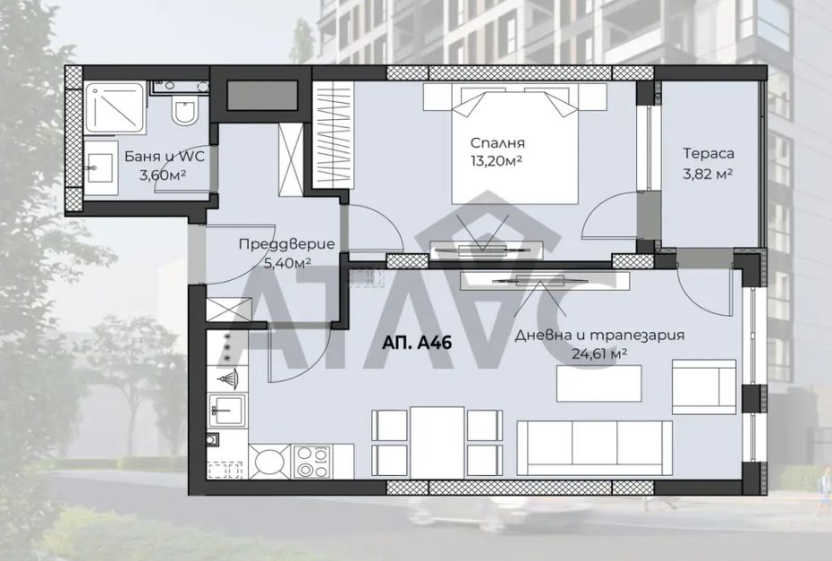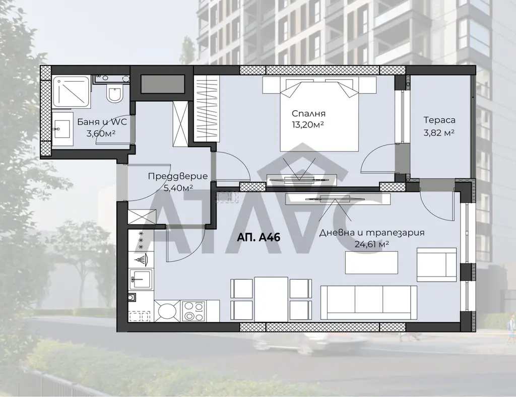 ДВУСТАЕН АПАРТАМЕНТ! АКТ 14! НОВА СГРАДА! ИЗЛОЖЕНИЕ-ЮГ! АТЛАС НЕДВИЖИМИ ИМОТИ Ви предлага ДВУСТАЕН АПАРТАМЕНТ в новострояща се сграда с модерна архитектура и високо качество, в сърцето на кв. Христо Смирненски. Жилището се състои от просторен хол с кухненски кът и трапезария, обширна спалня, входно антре, баня с тоалетна, тераса и килер. Имотът е с изцяло ЮЖНО изложение и се предлага на степен на завършеност Шпакловка и замазка по БДС с ВиК на тапа, ЕЛ. инсталация до ключ! Предлагаме Ви функционален апартамент в близост до всичко необходимо за спокоен и хармоничен начин на живот! В сградата има възможност за закупуване на паркоместа и гаражи! Оказваме пълно съдействие за банково финансиране от ВСИЧКИ ВОДЕЩИ БАНКИ в страната при най-добри условия и цялостна юридическа проверка на имотите, които предлагаме! БЪДЕТЕ ПРОФЕСИОНАЛИСТИ в избора на жилище с АТЛАС НЕДВИЖИМИ ИМОТИ !
