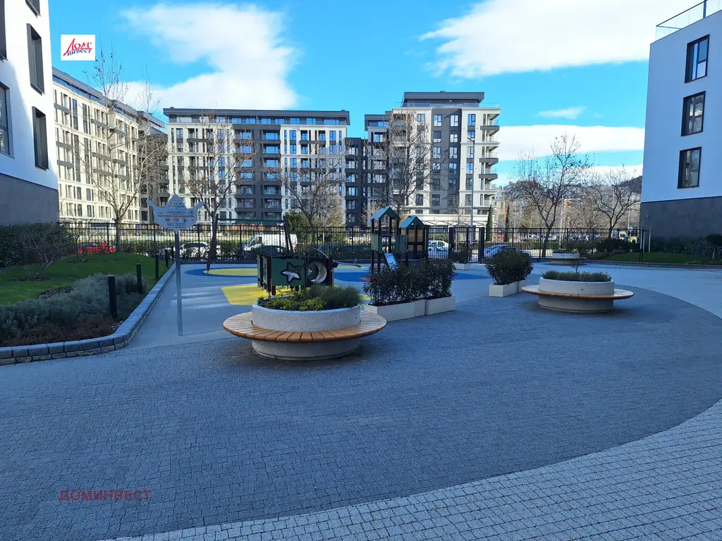 Към апартамента има подземно паркоместо и склад включени в наема. Паркинга е с отделни вход и изход от две места. Автоматичните врати се отварят с въведен номер на автомобила или с дистанционно.