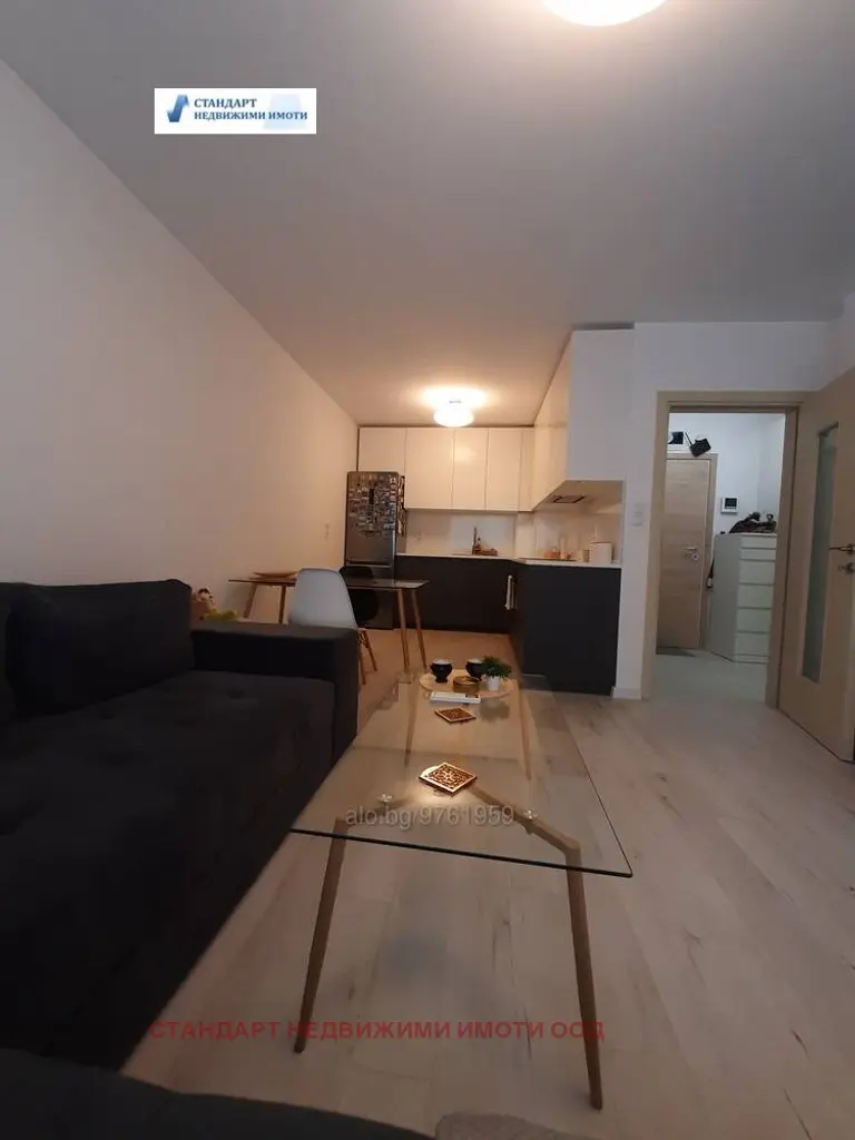 Стилно обзаведен апартамент за първи наематели. Състои се от голям хол с кухненски бокс, просторна спалня, баня с тоалетна и една тераса. Жилището е с всички необходими електроуреди, мебели и два климатика. С надземно паркомясто. Намира до спирки, магазини, близо до МОЛ Плаза. Обявата е на Стандарт имоти.