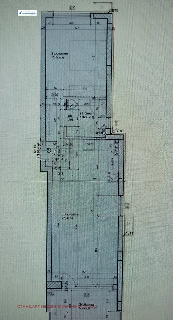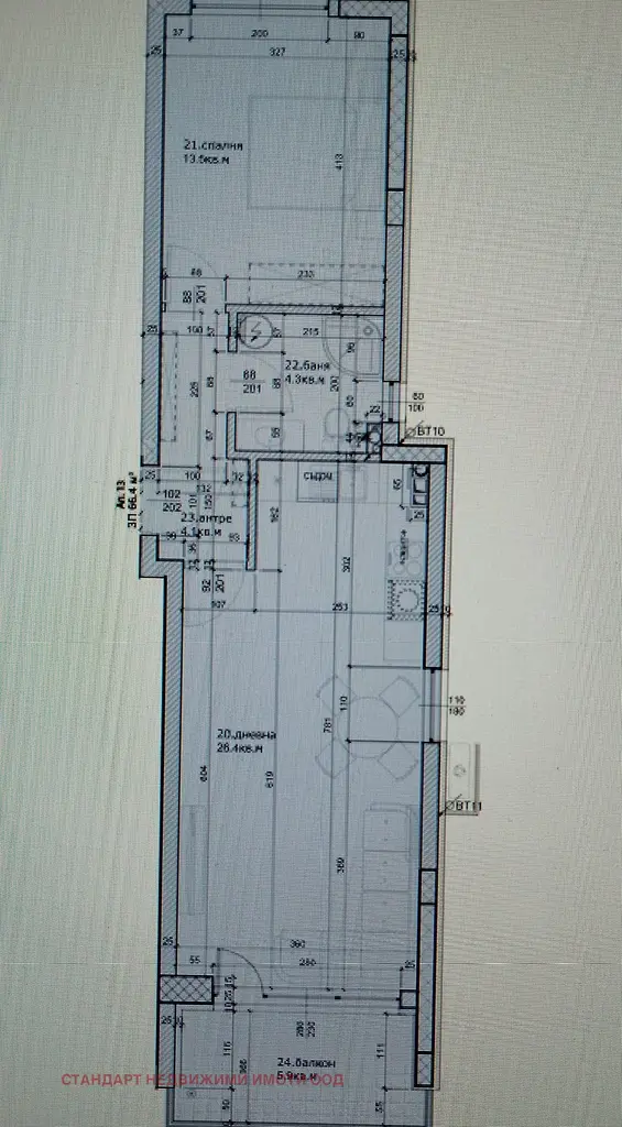 Стандарт недвижими имоти представя реално съществуваща оферта. Двустаен апартамент в нова,изпълнена качествено сграда, чрез използване на най-съвременни технологии и материали.Дневна с трапезария и кухненски бокс, спалня, антре, баня и тоалетна, балкон с обща застроена площ 74,79 кв.м.