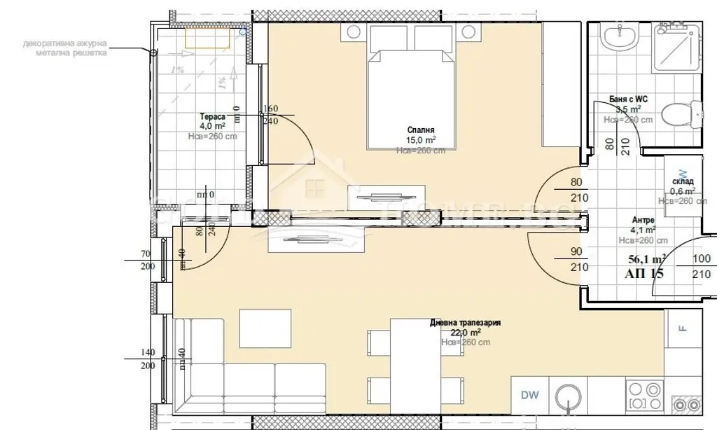 -Френски прозорци за оптимално естествено осветление;