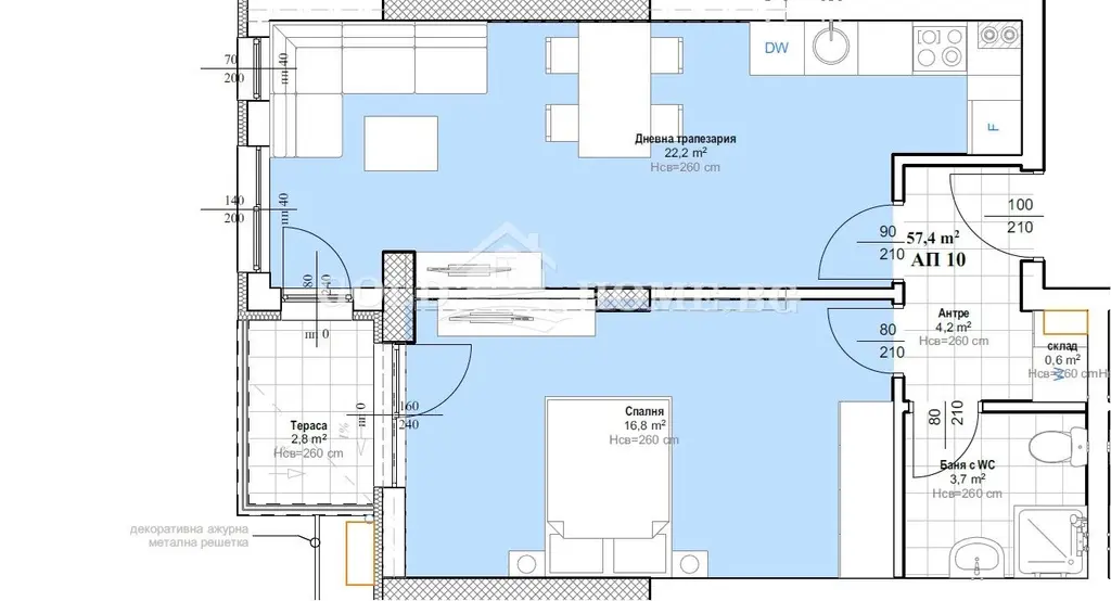 -Френски прозорци за оптимално естествено осветление;