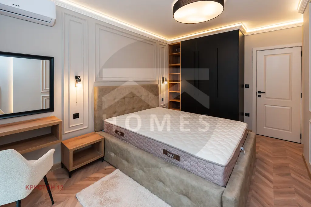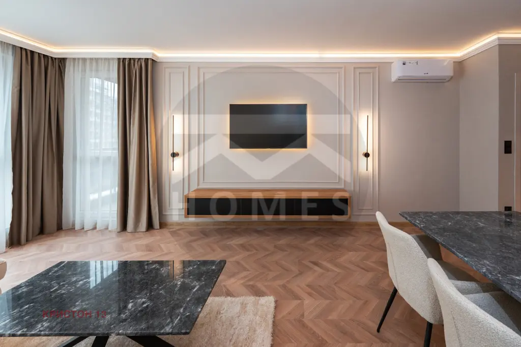 Жилището е с АКТ 16. Имотът е със следното разпределение - антре,баня, просторна дневна с кухненски бокс,спалня и терасa. Напълно оборудван с уреди - керамичен плот, фурна, аспиратор, хладилник, пералня, съдомиялна, 2 бойлера и 2 климатика. Всички мебели са по поръчка. Tерасата е с градински мебели.