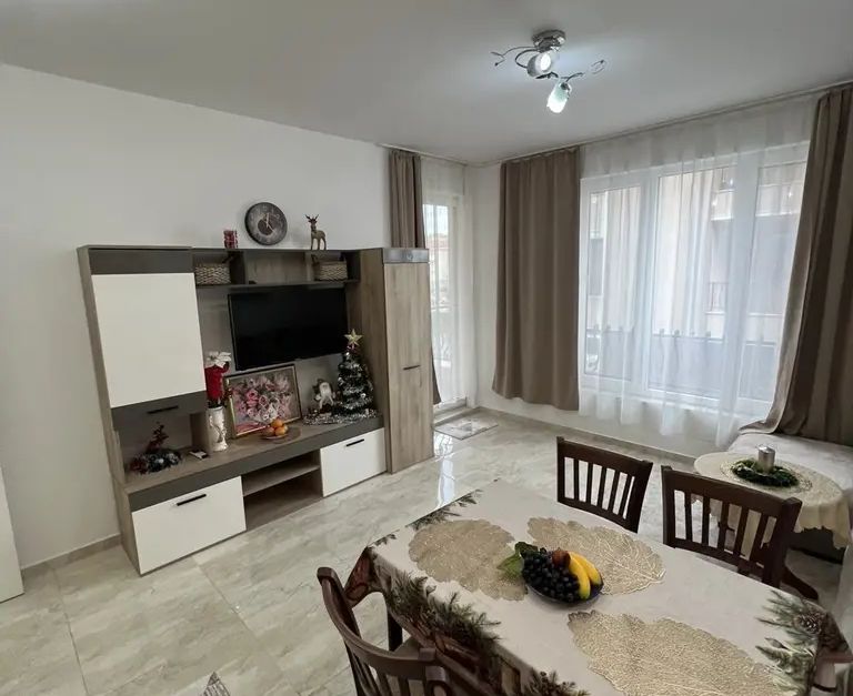 Перфектно завършен и обзаведен двустаен апартамент в нова кооперация,намираща се в красив и уютен комплекс. Състои се от спалня, хол с кухненска част, баня с тоалетна, тераса. На допълнителна цена може да се закупи гараж.