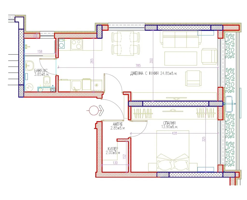 Апартамент на ул. Пчела, в непосредствена близост до МОЛ Пловдив, Гребна база, Пълмед. Тихо и озеленено място. Сградата е малка, с общо 14 жилища, построена с най-висококачествени материали, общи части лукс. Апартаментът е с източно изложение. В жилището са изпълнени шпакловки, боядисване, первази, напълно завършена и оборудвана баня, монтирани 2бр. климатици. С възможност за закупуване на паркомясто.