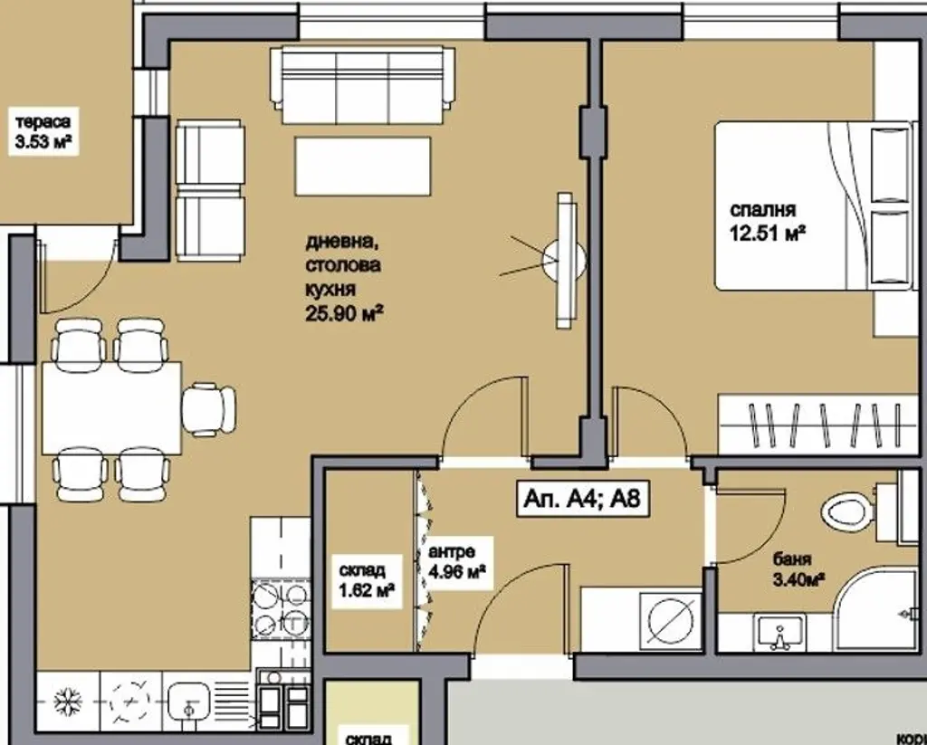 Двустаен апартамент с площ 71 кв.м. в квартал Прослав, град Пловдив.