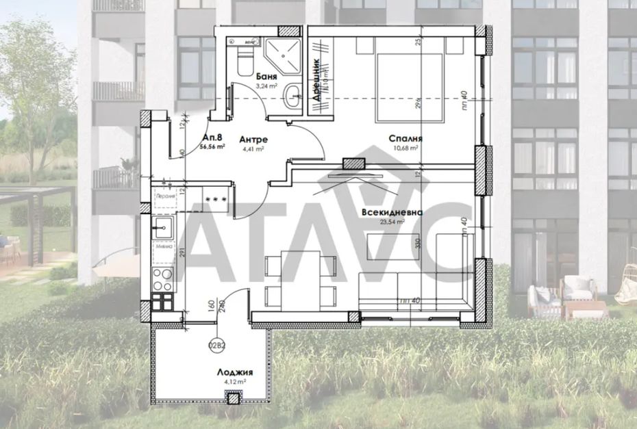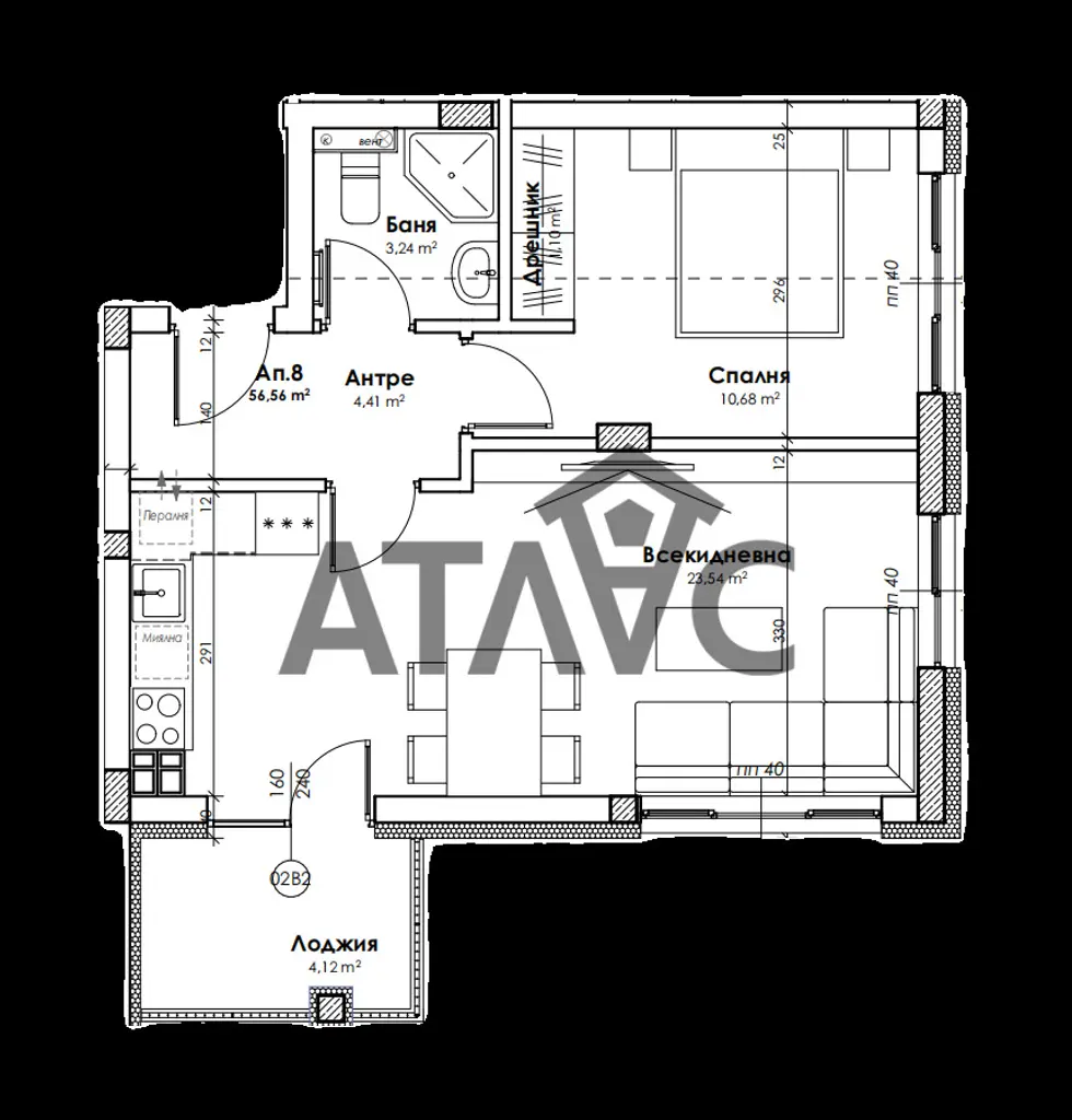 Представяме ви двустаен апартамент в малка бутикова сграда в кв. Прослав в начален етап. Разпределението на жилището е следното: хол с кухня и трапезария, спалня, баня с тоалетна, входно антре и лоджия.