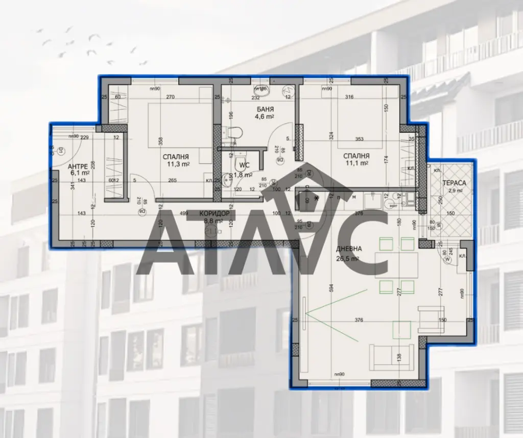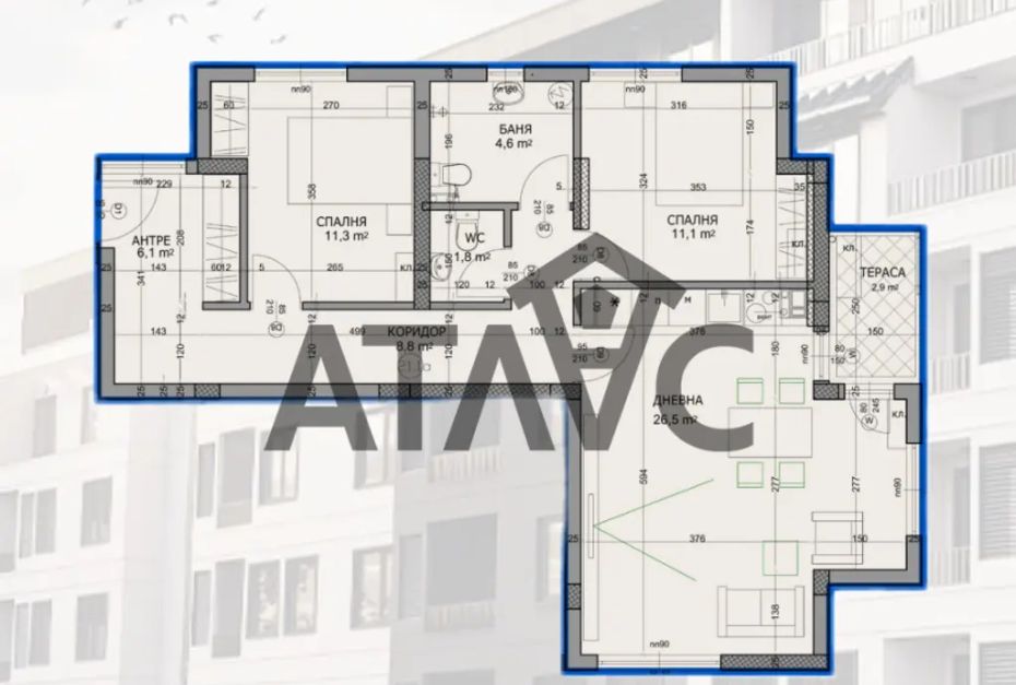 Тристаен апартамент с площ 113 кв.м, разположен на 2-ри етаж в нова сграда на бул. Пещерско шосе, район Христо Смирненски, Пловдив.