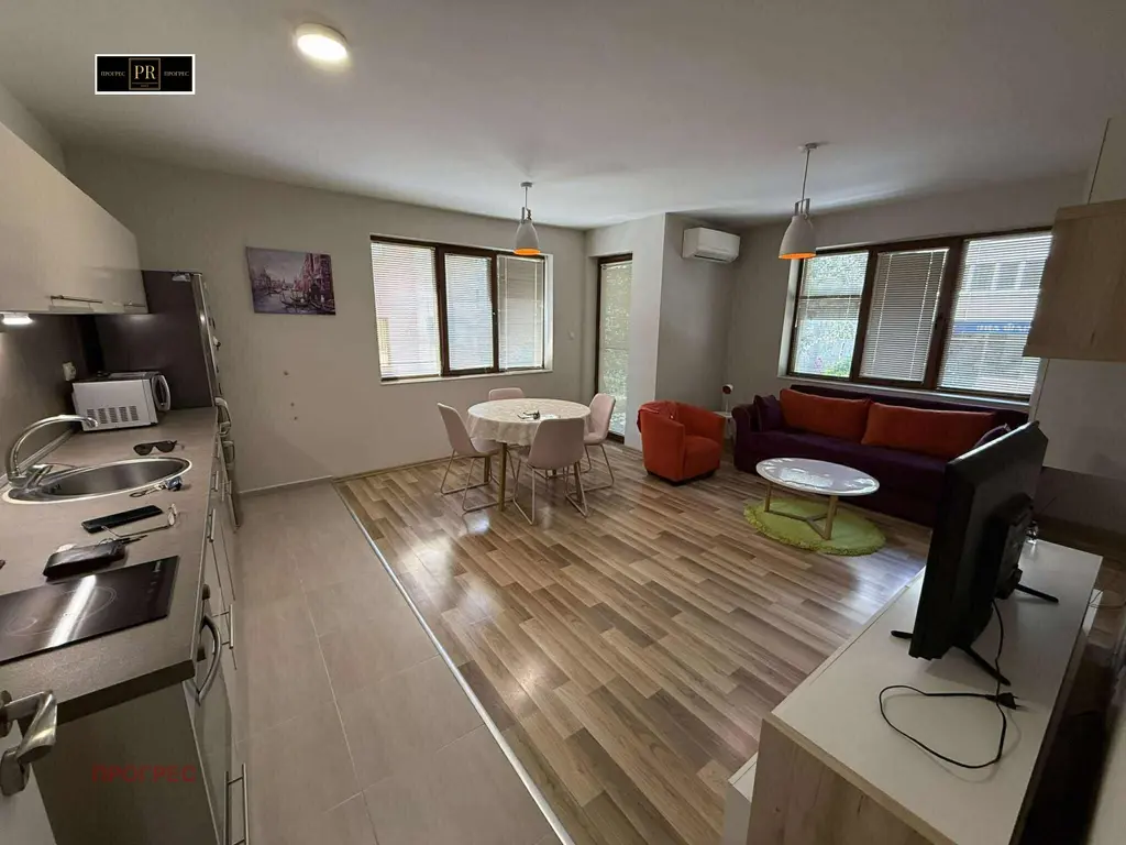 Представяме на вашето внимание тристаен апартамент в нова кооперация в района на Събота Пазара. Сградата е малка и бутикова с по само един апартамент на етаж. Жилището се състои от хол с кухня, 2 спални, баня с тоалетна, перално/складово помещение, коридор и тераса. Предлага се напълно обзаведен с мебели и електроуреди. Отопление и охлаждане на климатици. Паркомясто в двора на кооперацията е включено в цената на наема, като има и опция да се наеме и партерен гараж. За повече информация и оглед, свържете се с нас.