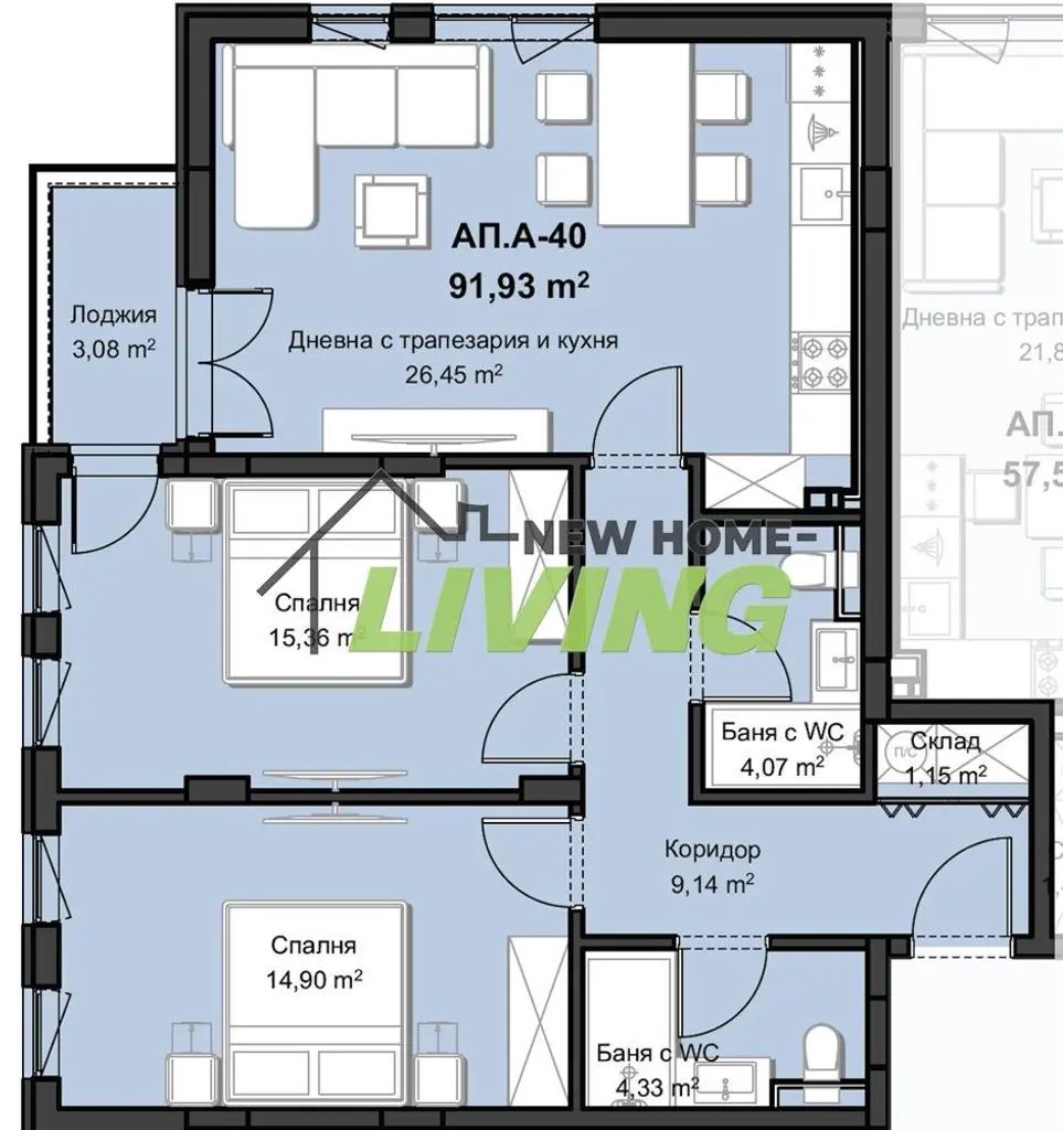 Комфорт и функционалност: практично разпределение с ясно обособени зони за дневна и отдих удобство за семейство с деца или за хора, които ценят пространството.