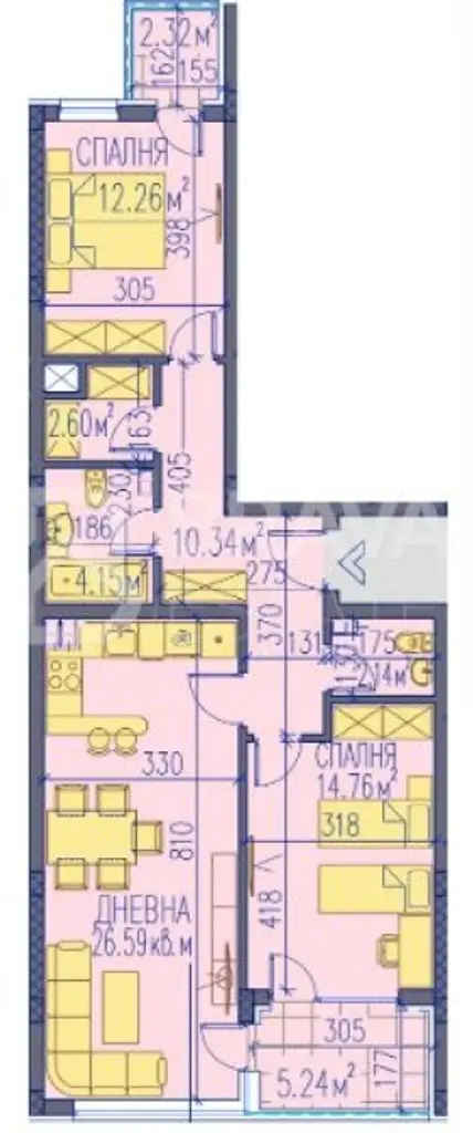 ➡️Разпределение: Антре, дневна с кухненски бокс и трапезария, 2 спални, баня с тоалетна, отделна тоалетна, склад и 2 тераси.