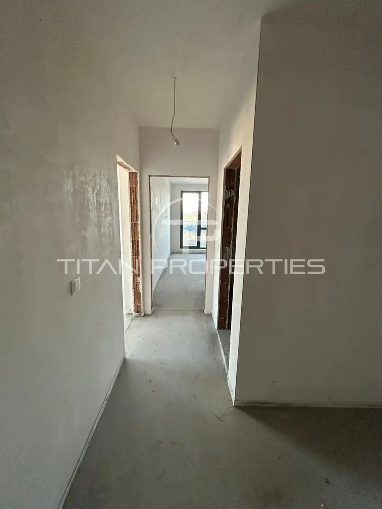 Сградата е тухлена, строителство 2026 г., с асансьор и възможност за подово отопление, като апартаментът е в степен на завършеност шпакловка и замазка.