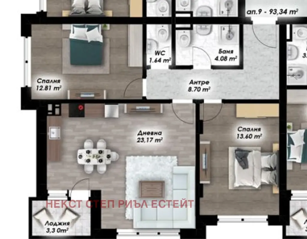 NextStep недвижими имоти ви представя тристаен апартамент с площ от 93,35кв.м на втори етаж в новостроящa се жилищна сграда в кв. Остромила - гр. Пловдив.