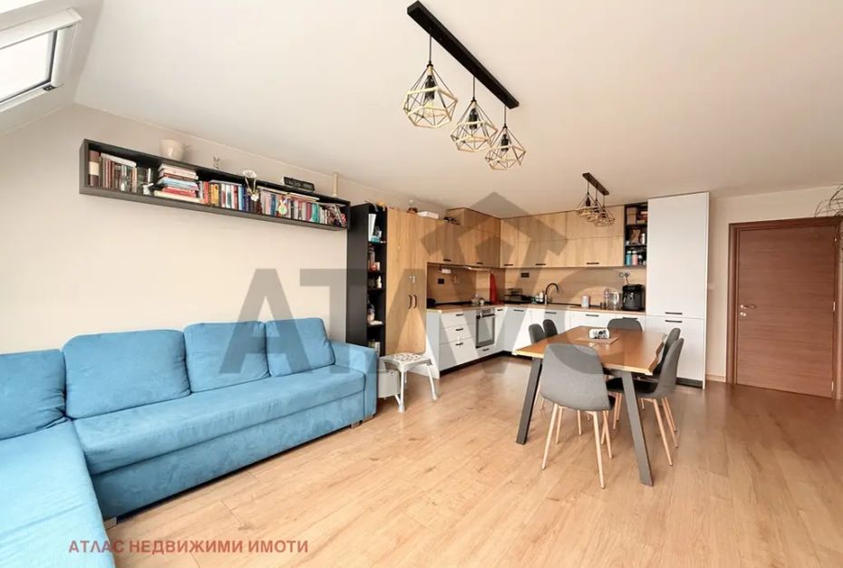 ТРИСТАЕН ОБЗАВЕДЕН! ПОДЗЕМНО ПАРКОМЯСТО! НОВА СГРАДА! АКТ 16! ЮГ- СЕВЕР! АТЛАС недвижими имоти ви предлага, тристаен апартамент със следното разпределение: хол с кухненски бокс стилен и просторен, кухня и дневна зона, светли тонове, модерна мебел, спалня, детска стая, две бани с тоалетна, просторна тераса с гледка място за кафе/релакс.