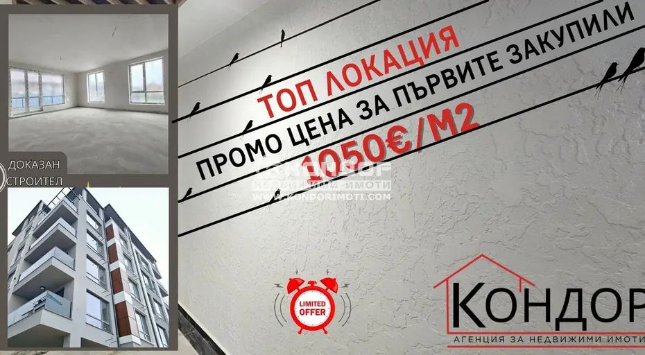 ЧУДЕСНА ИНВЕСТИЦИЯ предвид качеството на строителство, което може да видите на снимките в Галерия, взети от други готови сгради на строителя. ВИЖТЕ ОЩЕ ИЗГОДНИ ОФЕРТИ НА https://www.kondorimoti.com/ С ЕЖЕДНЕВНА АКТУАЛИЗАЦИЯ!