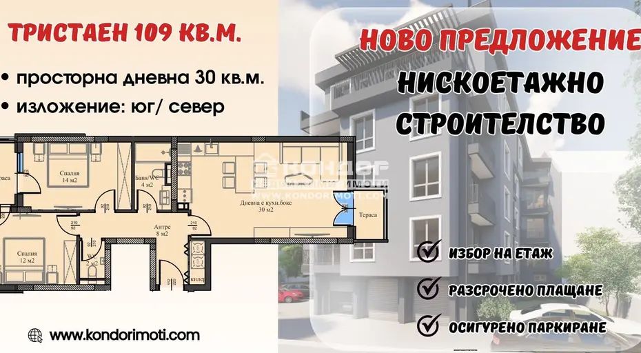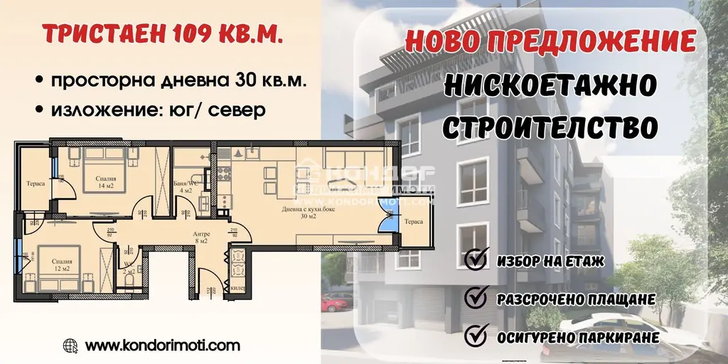 Оферта 65668:Специално предложение !!! НОВА СГРАДА !!! НИСЪК ПРОЦЕНТ ОБЩИ ЧАСТИ !!!