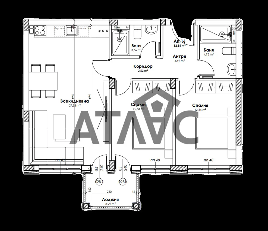 Представяме ви двустаен апартамент в малка бутикова сграда в кв. Прослав в начален етап. Разпределението на жилището е следното: хол с кухня и трапезария, две спални, две бани с тоалетна, входно антре и тераса.