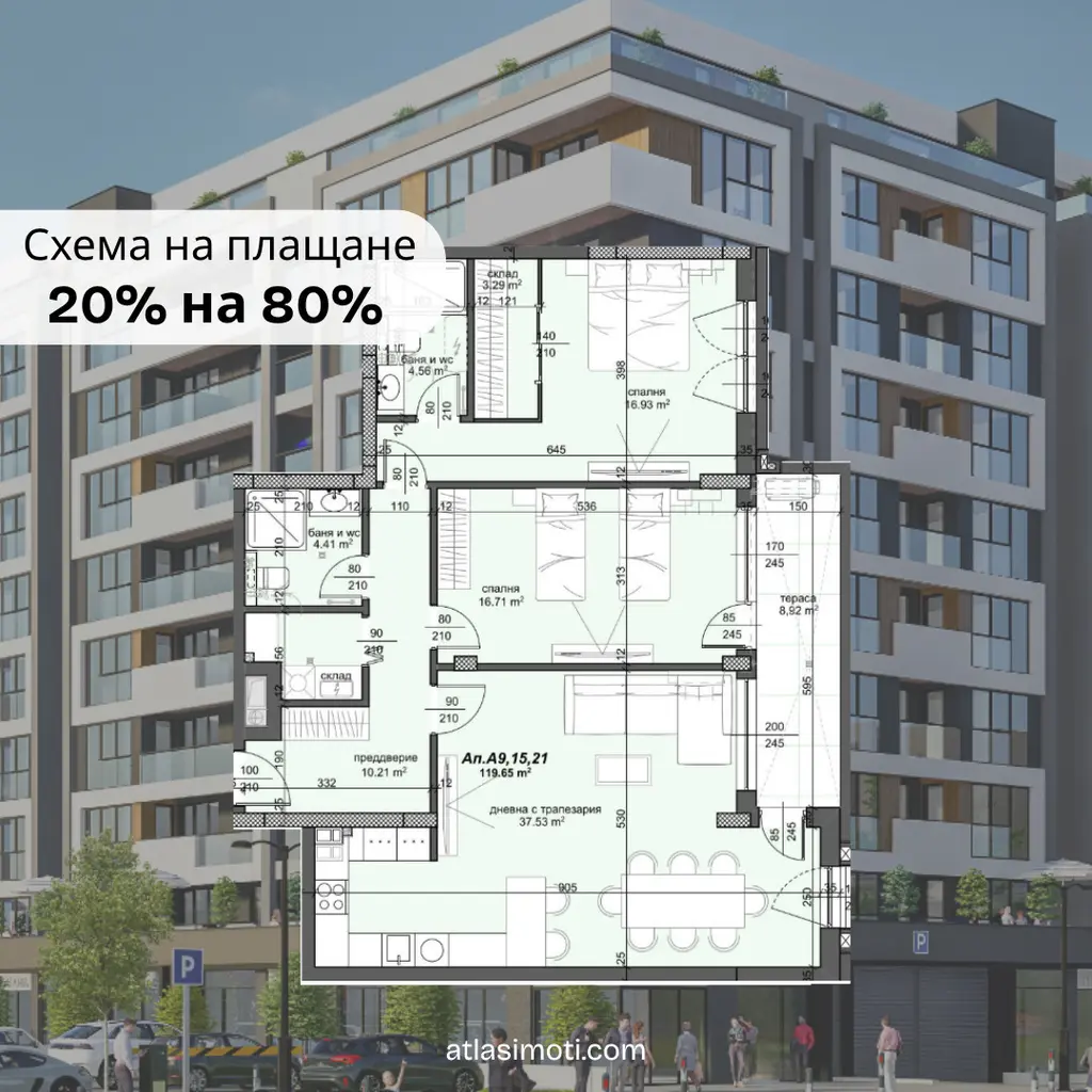 ТОП ЛОКАЦИЯ! СРЕДЕН ЕТАЖ! АТЛАС НЕДВИЖИМИ ИМОТИ Ви предлага Тристаен апартамент в един от предпочитаните райони на гр. Пловдив - жк. Тракия. Имота, който ви предлагаме да закупите се състои от ПРОСТОРЕН хол с кухненски бокс, две самостоятелни спални, две бани с тоалетни, тераса, входно антре с коридор и два склада. ЧУДЕСЕН избор за своя нов дом, както и сигурна инвестиция с цел отдаване под наем. Жилището се издава на завършени шпакловки и замазки, ЕЛ и ВиК инсталация, с луксозни и съвременни общи части с хидравличен асансьор. Всичко това в зелен и чист район на гр. Пловдив, същевременно в близост до голяма пътна артерия и лесен достъп до централна градска част. Добрата локация на имота предлага всичко необходимо в близост като хранителни магазини, детски градини, училища, паркове, автобусни спирки и др. Оказваме пълно съдействие за банково кредитиране С ВСИЧКИ ВОДЕЩИ БАНКИ в страната при най-добри условия и цялостна юридическа проверка на имотите, които предлагаме!