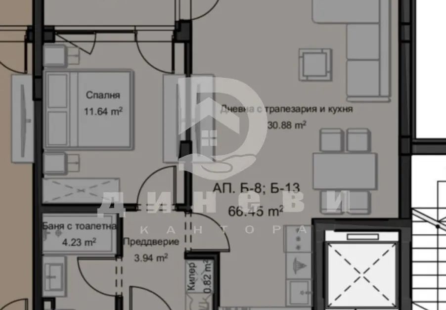 Кантора Диневи Ви предлага за продажба двустаен апартамент в модерен жилищен комплекс, разположен в един от най-спокойните и бързо развиващи се райони на Пловдив кв. Остромила. Локацията съчетава тишината и уюта на периферията с удобството на града, като осигурява бърз достъп до централната част и основните пътни артерии. Районът е изцяло с асфалтов достъп и изградена инфраструктура, което го прави все по-предпочитан за живеене.