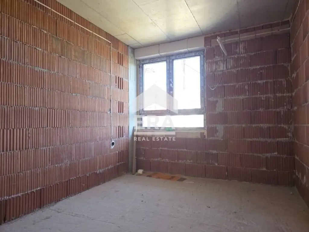Сградата е тухлена, в процес на строителство с Акт 14, очаквано завършване 2026 г., а апартаментът се предлага на шпакловка и замазка.