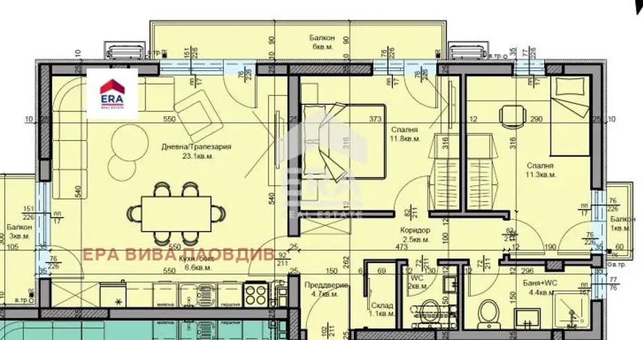-Просторна дневна с кухненски бокс и излаз към тераса