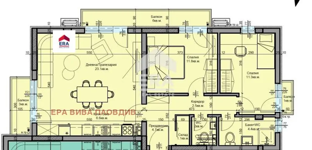 Перфектно разпределение и просторни помещения апартаментът е проектиран с мисъл за комфорт и функционалност, с големи стаи и отлично организирано вътрешно пространство.